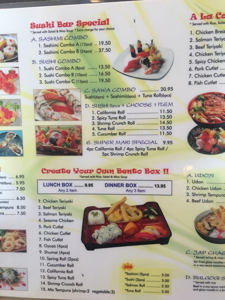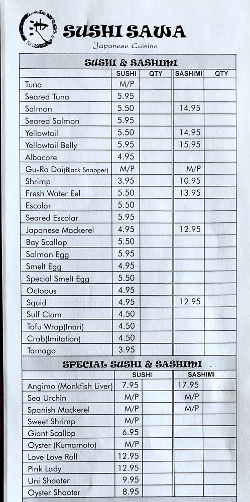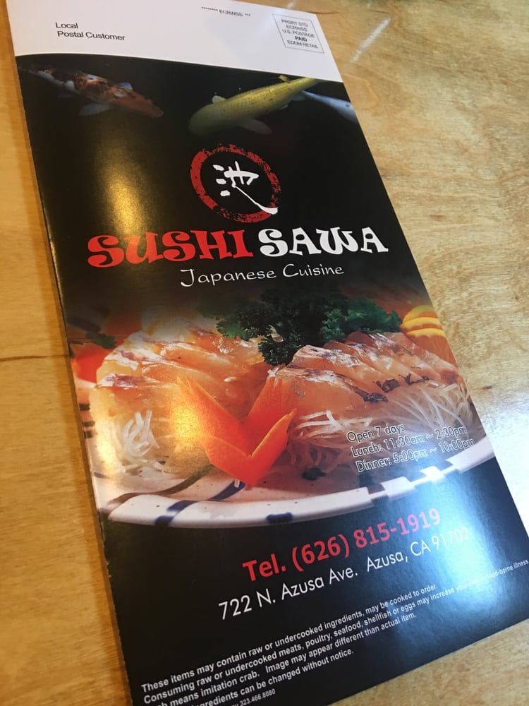 Introducing the menu at Sushi Sawa, a Japanese Sushi Bar located in Azusa, CA. This cozy spot offers a range of vegan and vegetarian options, perfect for those with dietary restrictions. The friendly staff are known for their excellent service and attentiveness. Customers rave about the fresh and tasty sushi rolls, affordable lunch specials, and generous portion sizes. With features like outdoor seating, beer & wine options, and even happy hour specials, Sushi Sawa has something for everyone. Whether you're looking for a quick takeout order or a leisurely dining experience, this restaurant checks all the boxes. Don't miss out on the opportunity to try their delicious dishes and experience the inviting atmosphere for yourself.